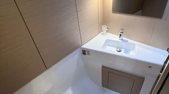 · El plaer de fondejar: la banyera s'ha adaptat per a facilitar la circulació a coberta i el gaudi de la vida a bord en els moments d'oci. El plaer en el fondejo es reforça quan el mirall de popa es desplega i es converteix en una plataforma de bany molt més àmplia del comú en aquesta grandària d'embarcacions.