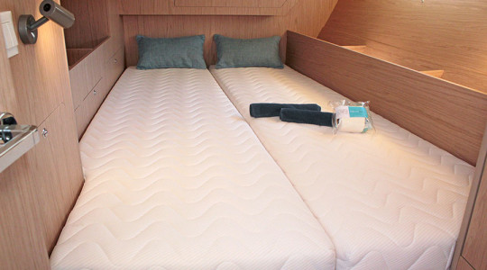 Sistema de aire acondicionado y calefacción con fancoil y termostato en el salón y en cada camarote. El sistema cuenta con una capacidad de refrigeración de 50.000 BTU y tecnología Inverter para reducir el consumo eléctrico. (La calefacción solo funcionará cuando la temperatura del agua de mar supere los 5 °C). Alimentación: 220 V CA.