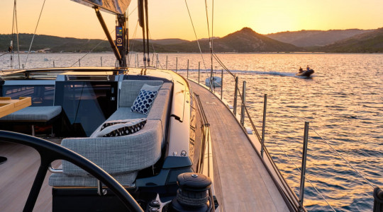 With a clean, flat and well-organized deck, wide steps towards the bow that facilitate comfortable movement, a cockpit focused on comfort and the manoeuvre grouped near the rudder to facilitate handling with a small crew, this sailboat meets the requirements that are demanded of a family and high altitude cruiser in this category.