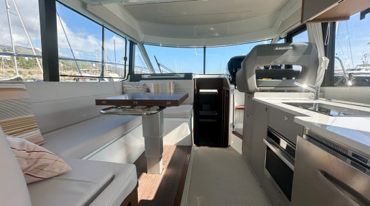 This 41-foot floating apartment combines comfort and efficiency, perfect for long cruises. Equipped with 3 cabins, 2 bathrooms, convertible saloon, and a spacious flybridge that offers a unique experience on the sea. Enjoy comfortable navigation and life on board with this model, known for its autonomy and low fuel consumption.