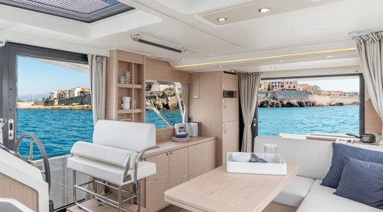 This model, designed for long cruises, features a spacious flybridge and a standard configuration of 3 cabins and 2 bathrooms. Its convertible saloon and optimized spaces offer superior habitability, ideal for enjoying life on board with all the comforts. With its elegant style and design focused on comfort, this boat is perfect for those seeking to feel at home, but on the water.