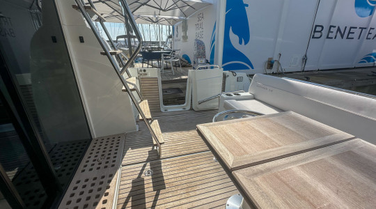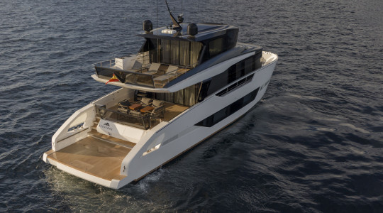 El yate crossover pensado para ser un crucero social, donde disfrutar de todas sus posibilidades y encontrar el espacio ideal para cada experiencia a bordo. Equipado para realizar largas travesías, ofrece una navegación firme, segura y placentera con máxima estabilidad en alta mar.