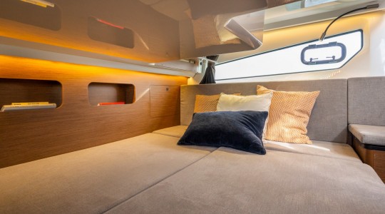 Con un diseño polivalente y amplios volúmenes, este express cruiser presenta unos interiores de calidad, elegantes y con un alto nivel en sus acabados.