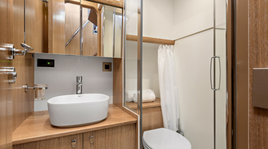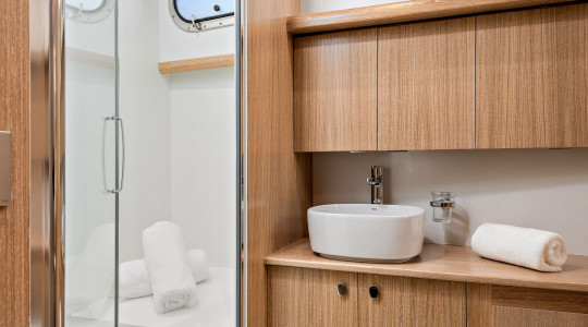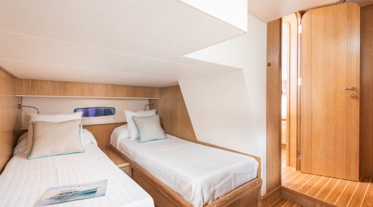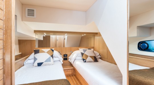 La optimización de su casco permite aprovechar al máximo los espacios y el incremento de motorizaciones estándar que el astillero ha aplicado esta temporada garantizan velocidades de crucero fácilmente equiparables a las de cualquier planeadora. Unas prestaciones dignas del considerado The Mediterranean Trawler por excelencia.