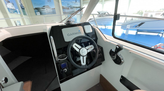 Impulsada por dos motores Suzuki de 300 CV cada uno, ofrece una navegación potente, estable y ágil, reforzada por el sistema de joystick para maniobras precisas incluso en los espacios más reducidos. La versión Soft-top proporciona una sensación de libertad y luminosidad sin renunciar a la protección, mientras que los estabilizadores Zipwake garantizan una navegación cómoda incluso con mar formada.
