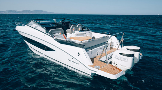L'évolution définitive des bateaux de la gamme Beneteau Flyer pour faire passer la croisière à la journée à un autre niveau, tant en taille qu'en confort.