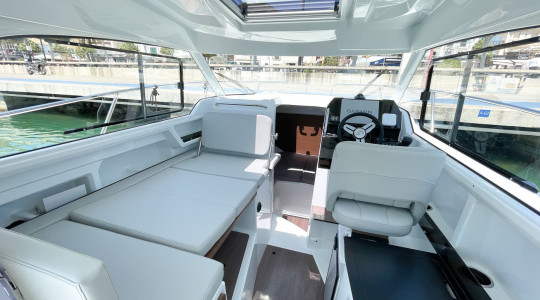 · Toit ouvrant :le toit rigide, aux lignes sportives et élégantes, est complété par un toit ouvrant électrique à la hauteur du poste de pilotage qui offre une très bonne ventilation, un contact avec le soleil et plus de connexion avec la mer et la nature.
