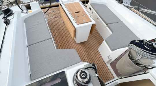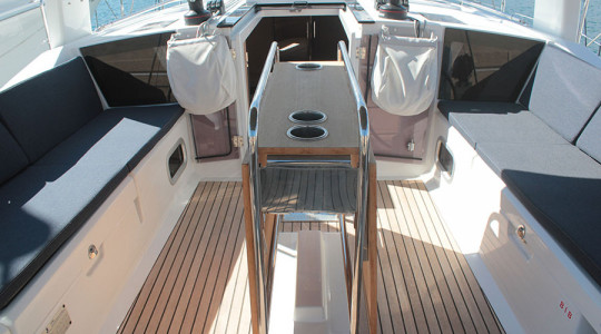 · Vie au mouillage : L’ergonomie et la circulation dans le cockpit facilite la vie à bord. Rien n’entrave la plénitude d’être au mouillage. Le tableau arrière se transforme aisément en une plateforme de bain immense, aussi vaste que les plus grands Océanis. L’accès à la mer est un modèle du genre, il fait partie intégrante de la vie à bord d’un voilier.